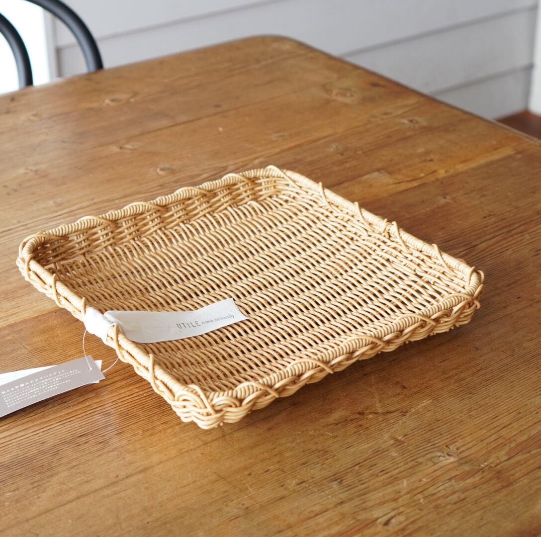こちらは、野菜や食器の水切り、食事の盛り付けにも使える角型のバスケットです。