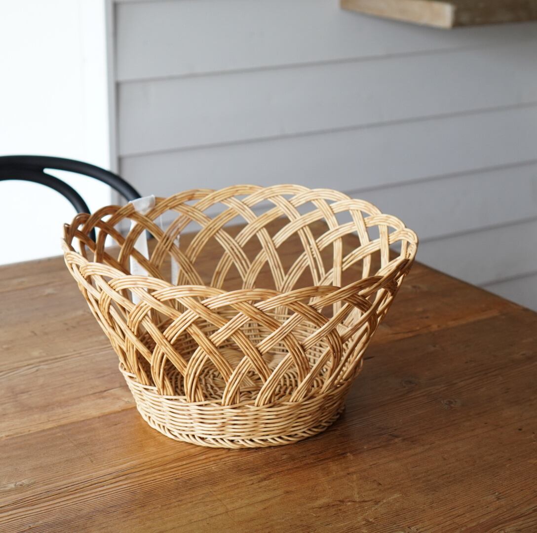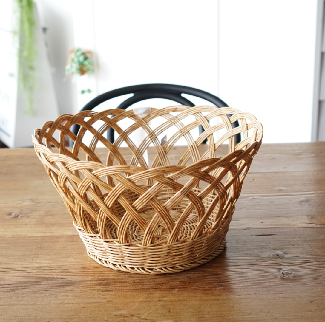 まるで天然素材で編まれたような、ポリプロピレンとポリエチレン製の手編みのバスケット。