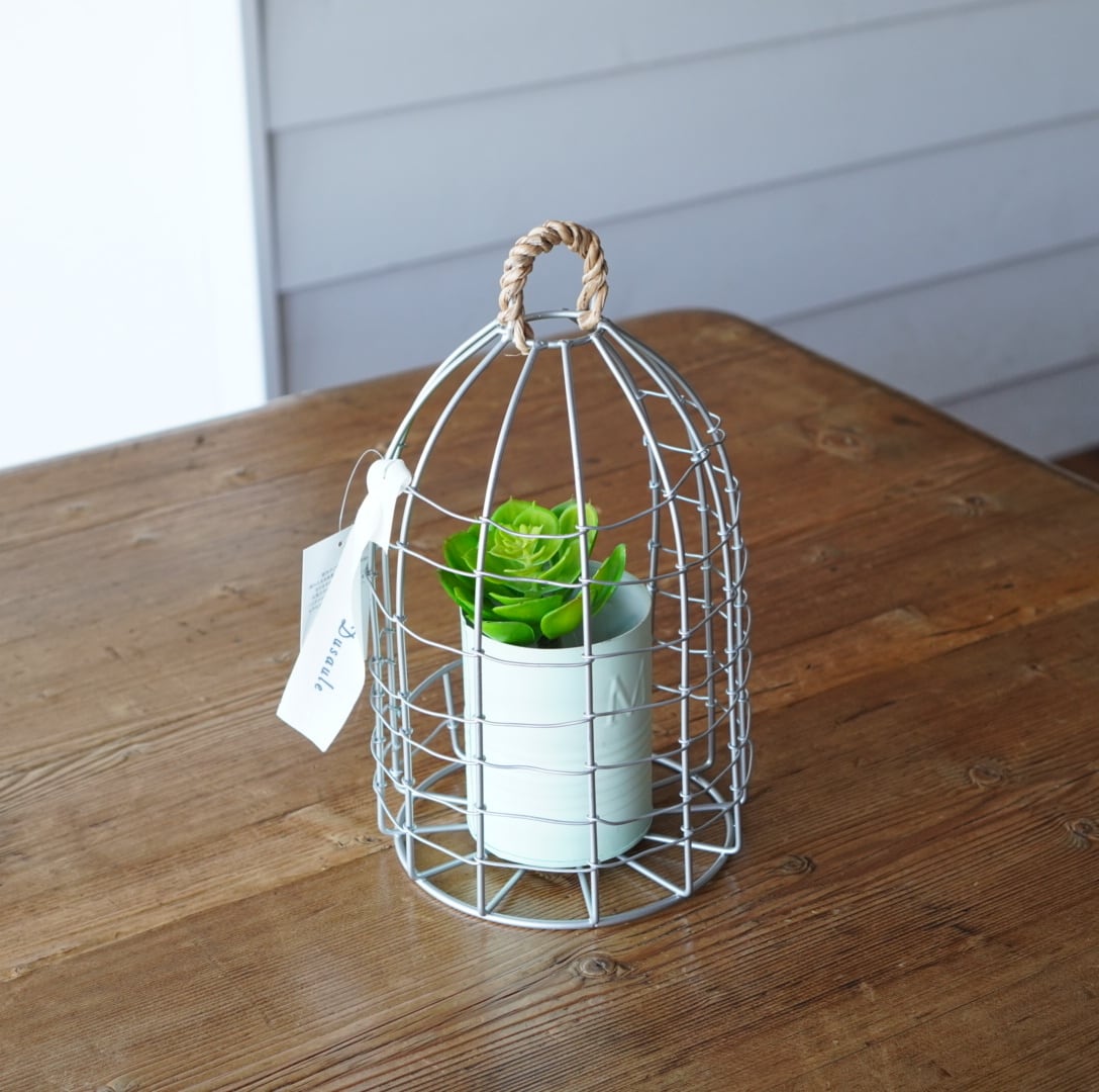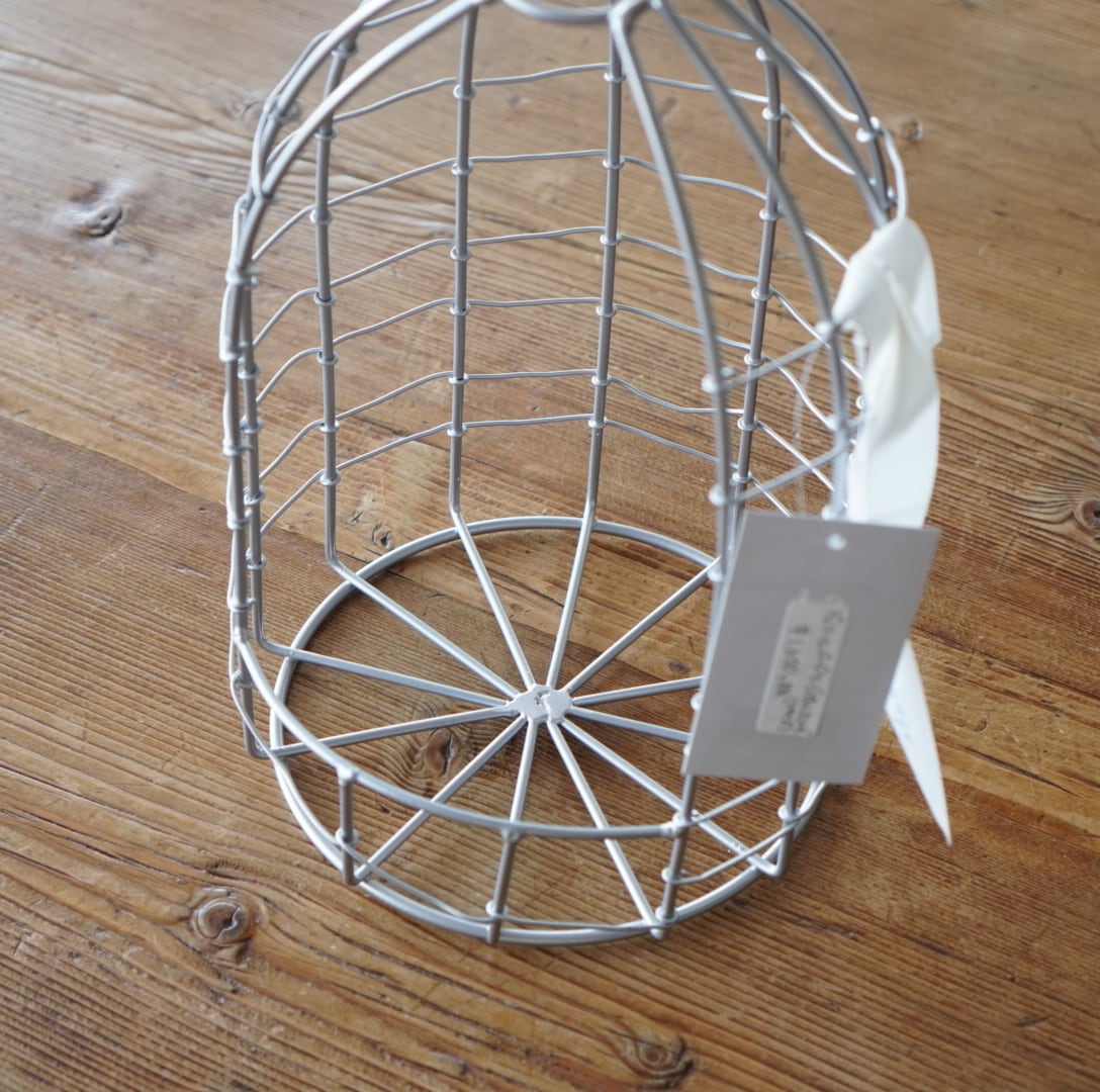 鳥かごの形をした、ワイヤー製のポットホルダー。