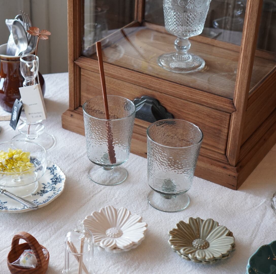 ガラス表面に施された凹凸のテクスチャーが涼しげで、パフェなどのデザートを美味しそうに盛り付けることができます。