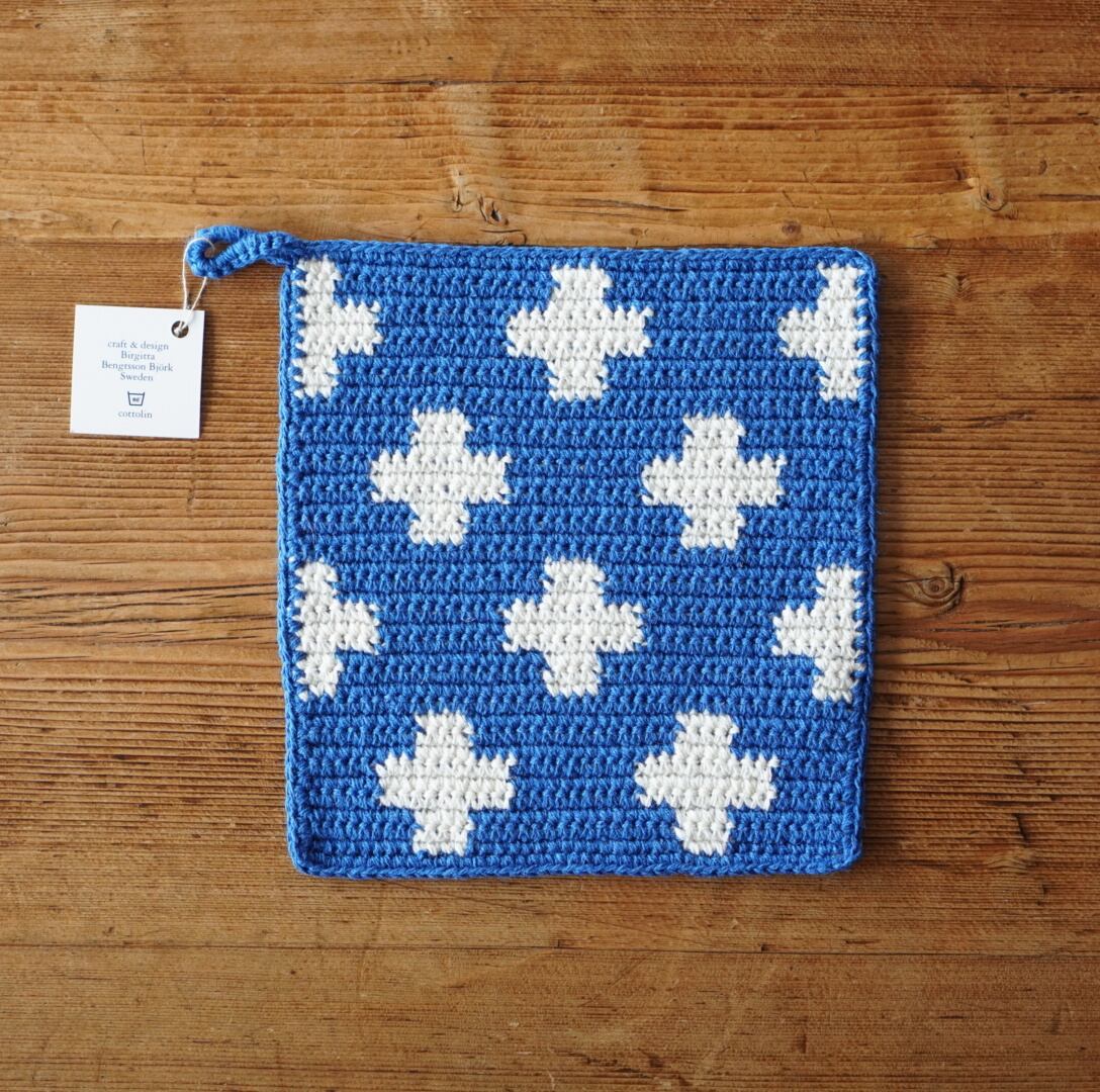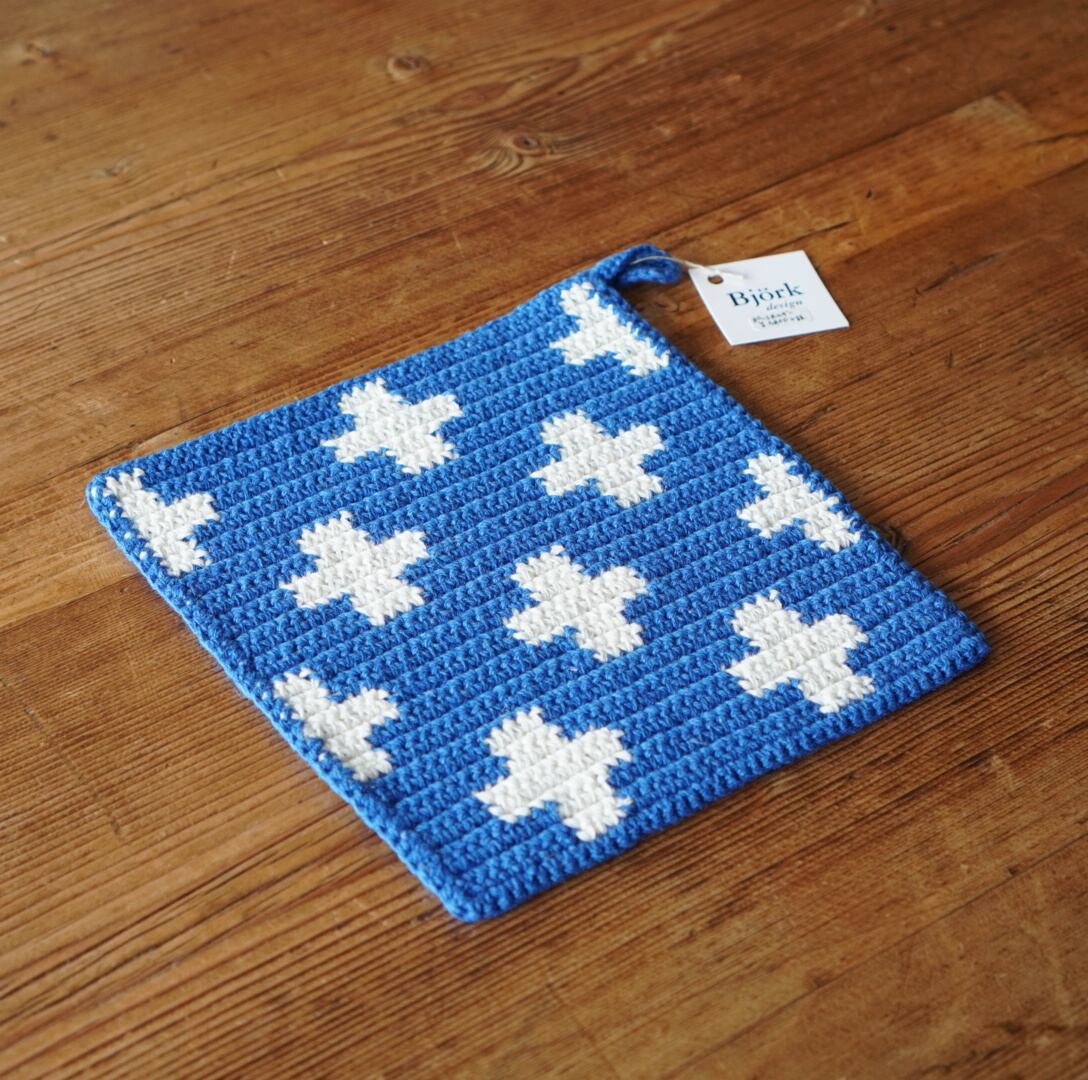 《SALE》 Bjork design ビヨルクデザイン ポットホルダー クロス (ブルー地×ホワイト) Lサイズ
