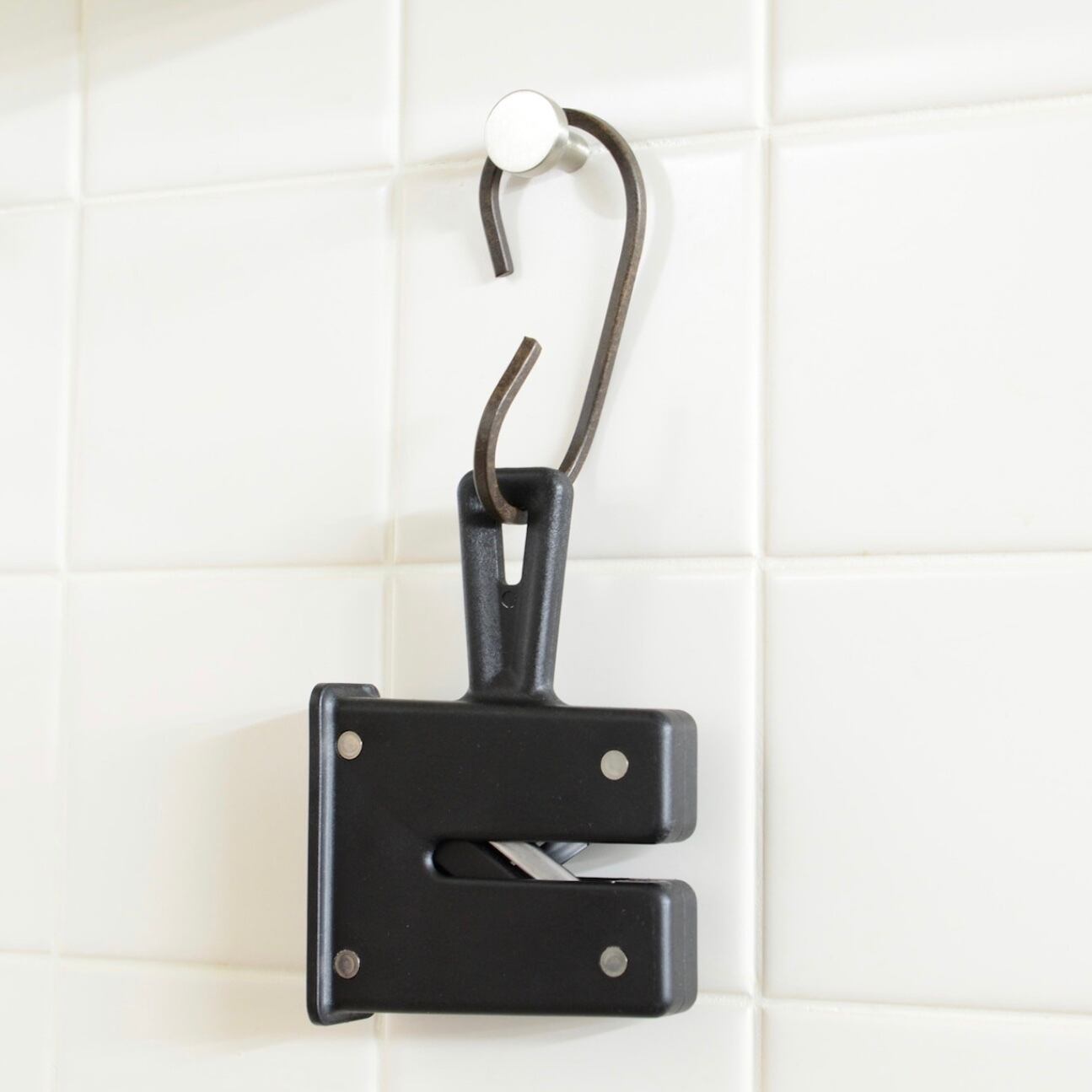 取っ手を握り、V字に重なった2本のスチールの上にナイフの刃を乗せて、前後に4~5回スライドさせるだけで、手軽に研ぐことができます。